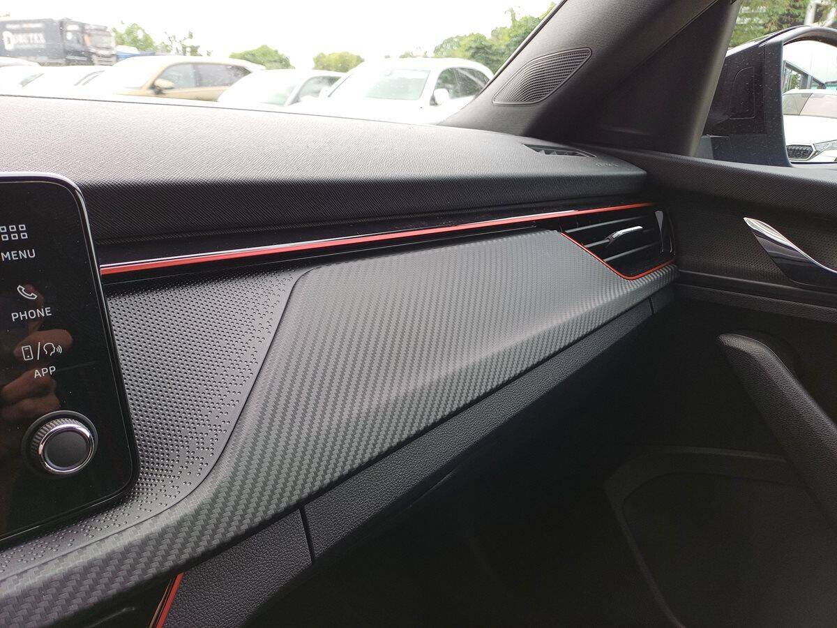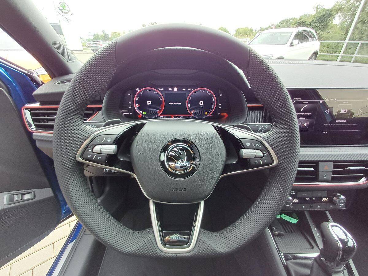 Navíc: Paket City Premium (parkovací kamera vzadu, parkovací senzory vpředu, KESSY s alarmem, volba jízdního režimu, el. víko kufru, virtuální kokpit, automatické parkování), Asistovaná jízda 1.5+ (adaptivní tempomat, adaptivní vedení v jízdním pruhu, hlídání mrtvého úhlu), vyhřívané čelní sklo, Škoda prodloužená záruka 5let/100.000km, Předplacený servis Standard 5let/60.000km.