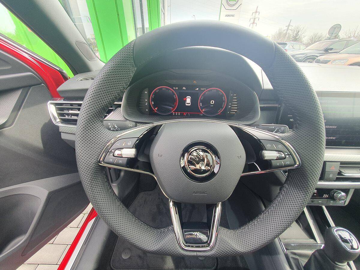 Navíc: Vyhřívané čelní sklo, ochrana cestujících (boční airbagy vzadu, kolenní airbag řidiče), litá kola Vega 18" Monte Carlo, rezerva, Asistovaná jízda 1.5+ (adaptivní tempomat, adaptivní vedení v jízdním pruhu, hlídání mrtvého úhlu), prodloužená záruka, Předplacený servis Standard 5 let/60.000km.