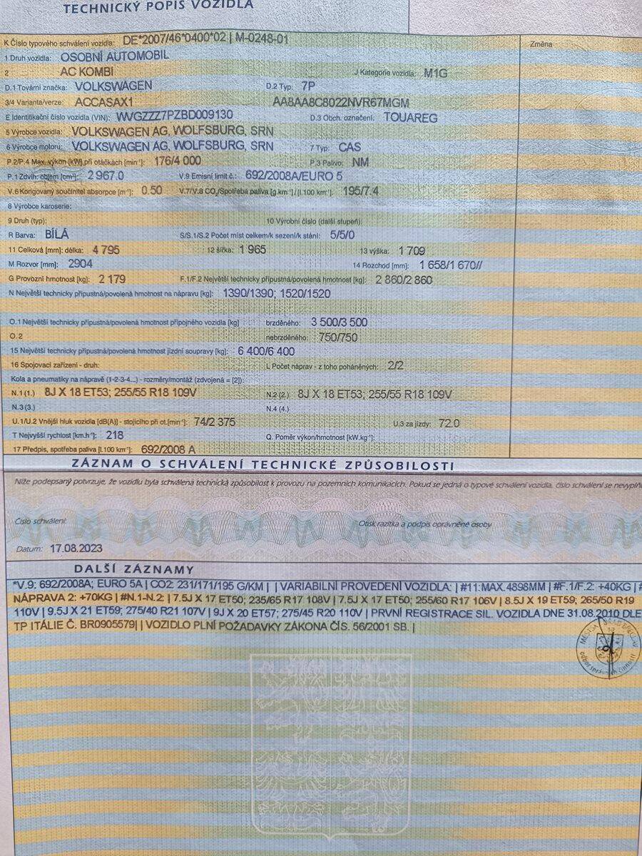 Specifikace vozidla
